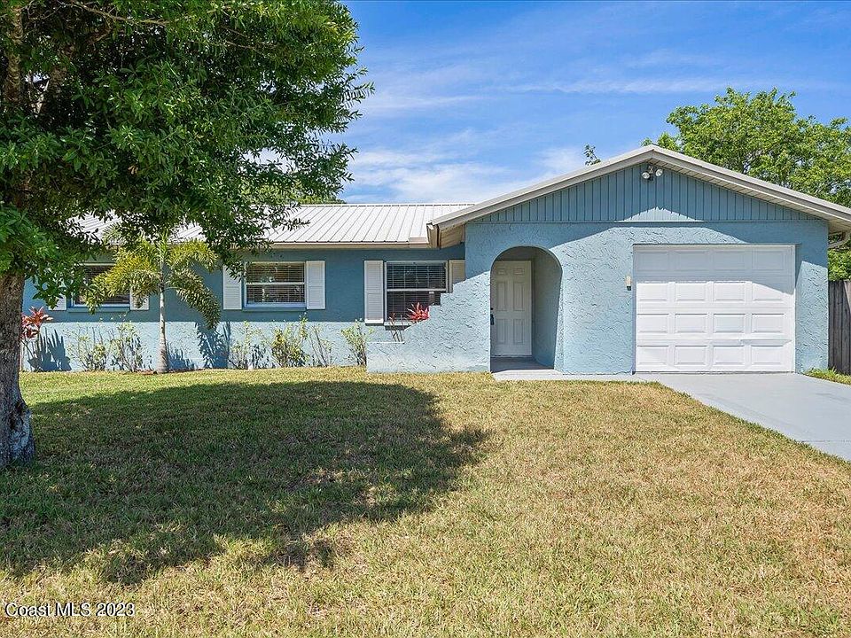 Stop paying 100% interest on your landlord's mortgage and start building equity in your charming, new home! Savor the ease of Florida living in this well-maintained, West Melbourne concrete-block construction home with no HOA, one car-garage and a 2017 metal roof. Enjoy the simple, but convenient luxuries of no carpet, all tile flooring, stainless steel appliances, lovingly-kept maple kitchen cabinetry, updated bathroom vanities, neutral bathroom shower/bath combinations, a screened patio and fenced backyard for Fido or the kiddos to play. Buy your perfect starter home or investment property all without breaking the bank! Quick, easy access to 192, Wickham/Minton, Dairy Rd, I-95, US-1, Northrup Grumman, Leonard DRS, L3 Harris & more!