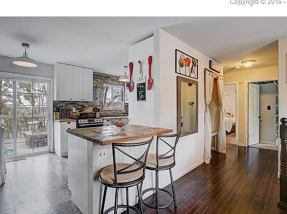 Absolutely stunning home! The spacious kitchen has been completely remodeled with all new appliances, a farmhouse sink, and butcher block countertops. The back door opens to a large deck that has great views of Pikes Peak and overlooks the 9100sf lot. The open living room features new wood-laminate flooring and a large bay window. Both upper and lower bathrooms have also been tastefully remodeled with fresh paint and new vanities. There is also all new carpeting throughout the home. The lower level features two more bedrooms and a massive family room with garden-level windows that let in plenty of natural light. This one won't last long! Be sure to check out the 3D virtual walk-through.