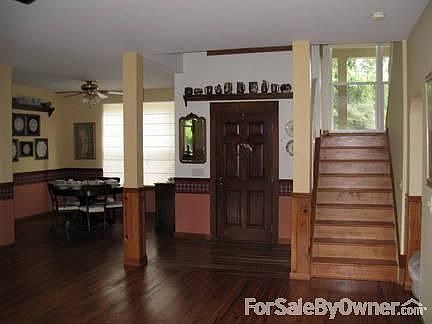 Priced UNDER the 8/4/2010 Bank appraisal.   Private, beautifully landscaped Cape Cod. Super insulated, energy efficient, low maintenance ICF (9 1/2 inch Exterior walls to withstand 250 MPH winds) & high strength  steel roof and floor trusses  to withstand high winds. Situated 400 feet from road on 4.1 acres in desireable North Hall. 10 minutes to Lake Lanier public boat ramp. Three levels of individually super efficient Puron heated/cooled living space. No step front entry from garage and front porch. Two decks, large upper balcony and a patio. Main Level with heart pine flooring (from 1870 cotton mill) has Master suite, Great Room and Office/bedroom all opening onto covered deck. Also on main level is large laundry and separate dining room, 1/2 bath and kitchen with walk-in pantry and breakfast area. Upstairs:  one full bath/double sink and separate vanity shower area, two bedrooms, each with walk-in closets, and one with sitting area and outside balcony. Finished open plan terrace level with pool table/full bath/storage opening onto a  large patio.   1/3 acre bass fishing pond with multi level decks and pond house as well as solar heated in ground pool. Back of the property has gate onto a very private gravel one lane road.   Additional features: Keepsafe windows and doors providing tornado resistence and burgulary proof protection; metal roof; lightning protection; south facing for passive solar heat in winter; ceiling fans in most rooms; private well; spring-fed pond entirely on property; whole house water filter; 2 car garage; Small barn for additional storage. Fenced. Average electric bill $100 mo. Ten minutes to Lake Lanier. Five minutes to schools /stores/doctor/dentists/pharmacists/banks,etc.