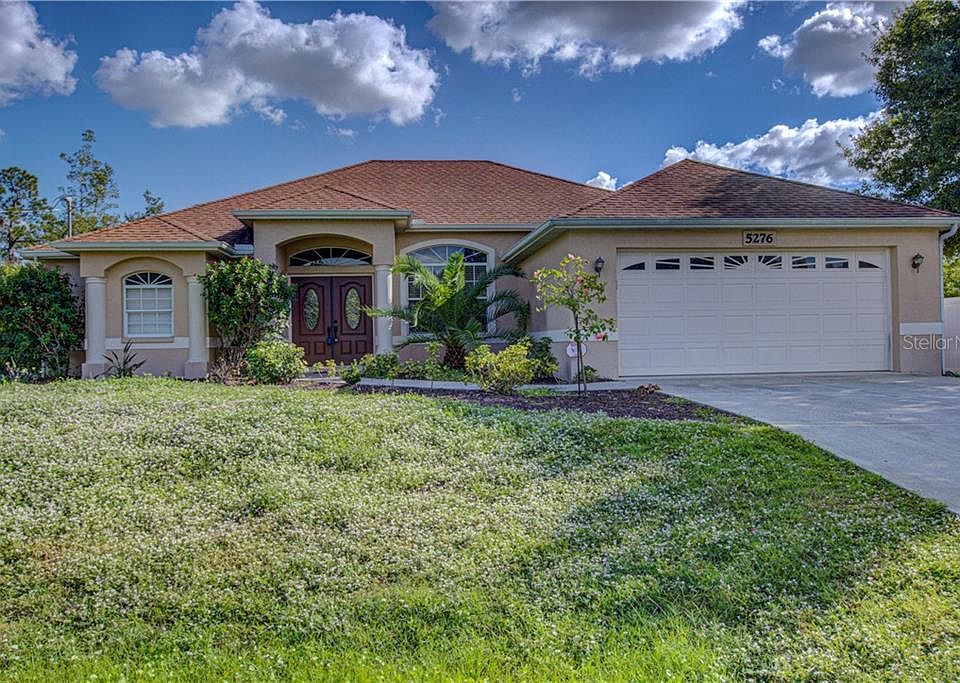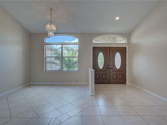 Enter the front door and feel right at home in this open concept 4 bedroom, 2.5 bath pool home set on a half acre lot! Entertain your friends & family in the centrally located kitchen with solid surface counters and stainless steel appliances which opens to the family room and flows easily into the separate formal dining room and living room with vaulted ceilings. The lanai and pool area with half bath acts as an extension of the living area with access from one of the many sliding glass doors off the living room, dining room and master bedroom, perfect for family get-togethers or parties. At the end of the day, escape to your private Master bedroom en suite with double walk-in closets, dual sinks, a whirlpool tub and separate shower. The other three bedrooms are located on the other side of the house with the second bathroom. There is a large fenced in section of the yard plus plenty of open space to play sports of outdoor games. If you are looking for some space, like to have some privacy or like to entertain, make sure to check this one out!!!