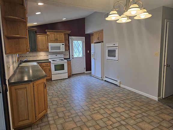 This nice ranch styled smoke and pet free house is located in a quiet area within 2 miles of 78. It has 4 bedrooms, 2 full bathrooms, a spacious living room, a nice kitchen, finished basement with tongue and grove wood, it also has a nice screened in porch. And a nice backyard. The house has new paint and carpet and comes with all the following appliances; washer,dryer, fridge, electric range, microwave and dishwasher. It has central air conditioning and oil hot water baseboard heat. This property also comes with a nice detached 2 car insulated garage with electric and a 26' by 37' pole barn with electric and a overhead garage door. Renter is responsible for all utilities. Last month's rent is due at signing. No smoking and no pets allowed.