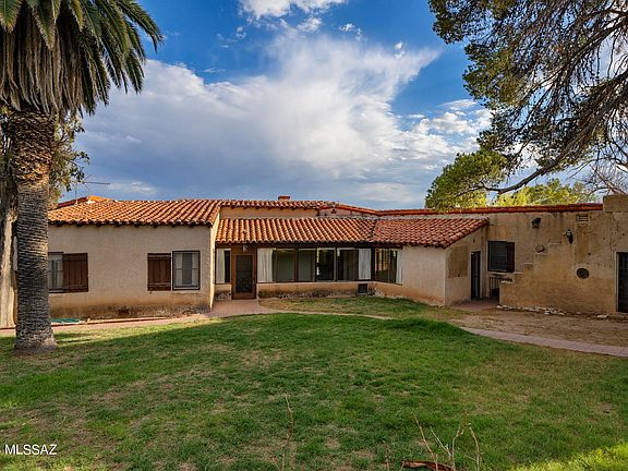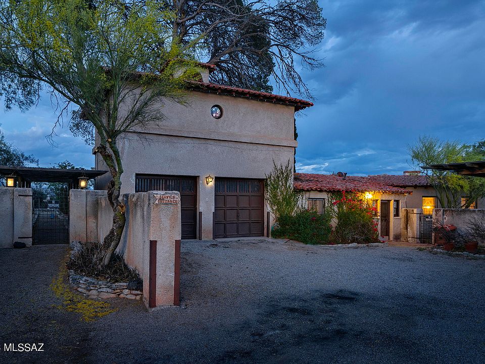 Own a piece of history! Early1930's Joesler in up on a private hill in Catalina Foothills Estates. Main house is 3 bed, 3 bath w office & attached sitting area, could be used a library or media room. Lovely wood floors in the dining & living room, tall windows, multiple patios & family room overlooking the back yard & mountains. 540 sq ft studio guest quarters over the 2 car garage w private entrance. and bath. Great period features include round door frames, beamed ceiling, large fireplace w hearth, unique lighting. 2 basements , one for storage, the other houses the HVAC systems & water heater. Home also has a 2 stall stable & small animal pen. Pool & spa need to be replastered. See floor plan in documents & photos to appreciate the flexible space. National Register of Historic Places.