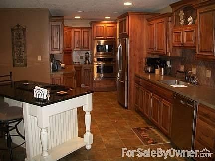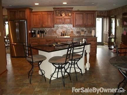 Located on cul-de-sac in Twin Lakes neighborhood with excellent resale. The kitchen is huge (20 x 20 ft) and newly remodeled with gorgeous cabinets, stainless appliances, tile back splash, cook island with marble counter tops and patio access. The living room has vaulted ceiling with gas log fireplace. Formal dining and eat in kitchen. The master suit has a full bath, walk in closet and patio access. The full basement is finished with rec room, pool table, wet bar, family room with Bose surround sound, 2 large bed rooms, large full bath, and storage room. All Pella windows with freshly insulated attic. The garage has third bay with access to back yard. Privacy fence around beautifully landscaped back yard. The yard backs up to a creek with woods. The yard is well-shaded with ornamental trees including two Bartlet Pear, Oak, Maple and Blue Spruce. The programmed sprinkler system is fed by separate well with submerged pump. This is, by far, the best neighborhood in Great Bend with the best schools in the area. The neighborhood is quiet and safe for kids to play and ride bikes.