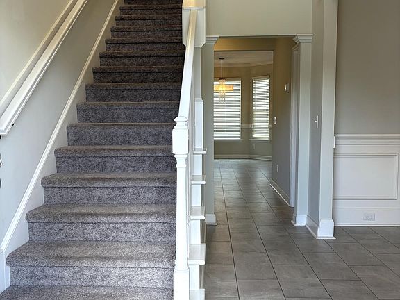 Available for June occupancy! 4 bedroom, 2.5 bath home located in highly sought-after Haynes Station community. Covered rocking chair front porch leads to 2-story foyer with custom lighting, stairwell and hallway with half bath to the open floorplan living room and kitchen. To the right is the formal dining room with custom lighting and chair rail and a butlers pantry passageway to the kitchen with not one, but two storage closets. Fully equipped kitchen with stainless appliances, granite counters, tile backsplash, kitchen island with overhang for barstools and double door pantry for even more storage, adjacent to the breakfast nook with custom lighting and bay windows. The living room has fireplace, ceiling fan, provided tv wall mount, custom wall accents and door to backyard. Behind the foyer is a mud area with coat rack and shoe bench that leads to the 2-car garage and power pantry that has a water line for additional refrigerator/ice maker. Upstairs you will find a large primary suite that has ceiling fan, custom wall accent, separate area that can be used as a computer area or reading nook, a provided tv wall mount with custom cupboard for electronic devices and access to the primary bath that has dual sink vanity, separate tub and shower and water closet and access to large primary closet with custom storage system with drawers and hanging spaces. Laundry room upstairs has storage cupboard and hanging rack. 2nd and 3rd bedrooms with ceiling fan. Upstairs hall to large 4th bedroom with ceiling fan, custom wall accent and walk in closet. Covered back patio and large fenced in backyard. Security system and sprinkler system provided. #goodtoask