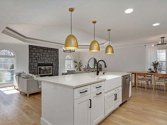 Beautifully & professionally remodeled home in prime location on 5+ park-like acres!!! Open floor plan concept with cozy fireplace in living room. Custom kitchen is every chefs dream with quartz counters, custom hood, double oven, trash compartment, spice rack and tiled backsplash. Spacious master bedroom with his and her walk-in closet, custom tiled shower and jetted tub. Heated sunroom. All cedar sauna in back yard with an electric stove. Newer roof, HVAC, LVP flooring, doors, trim, shelving in closets and much more. Call today for your private showing!!! 2023-02-23