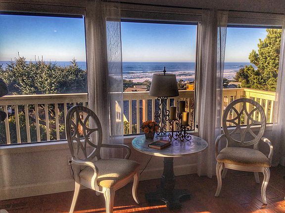 Private And Secluded Driveway Leads To An Incredible Ocean View Home In Desirable Roads End. This Immaculate Home Boasts Panoramic Ocean Views Throughout The Entire Home, Spacious Floor Plan For Entertaining, Formal & Casual Dining, Granite Counters, Travertine & Porcelain Tile, Hand Scraped Hardwood Flooring, Wall To Wall Custom Shelving & Much More. Kick Back & Relax To The Sounds of The Surf. Tucked away high above street level, perched on a hill, this beautiful beach house marries open space living with quiet privacy from street and neighbors. With spectaculars ocean, sand and surf views all the way to gods thumb. If you are looking for that rare quiet privacy from street and neighbors yet still in town close to all amenities you have found it. Fresh new paint inside and out are sure to please. Brand new 50 year roof, large picture windows allow the ocean views from anywhere in the home to take hold, offering an indoor outdoor lifestyle, beautifully manicured and maintained front and back yard are quiet and serene, mixed with the ocean sounds and panoramic views, way high out of the tsunami zone will check all of your boxes and make you feel right at home. This home features desired split floor plan, with an extensive kitchen including flat stainless steel appliances, extra large granite countertops, amazing kitchen cabinets with lots of storage, this home is perfect for entertaining. Large walk in pantry, wonderful appointed hardwood floors, 2 fireplace’s, 1 gas, 1 regular, 2 spacious living areas, 3 bedrooms, including 1 large master suite with large 3 person soaking tub, beautiful walk in travertine and stone shower and dual sinks, large bonus room with its own entry perfect for rental or mother in law quarters, 2.5 bathrooms, large laundry room with a deep sink, cabinets and brand new high end washer dryer sitting on top of pedestals, inside laundry room you will also find a brand new efficient hot water heater. The high ceilings and staircase and 2 skylights allow for lots of natural light. high end interior plaster paint on certain walls in home give that luxurious accent feel you deserve. Huge ocean viewing deck, Large 2 car garage with built in storage and counter/work bench, Rv/boat parking on side of home, 6 person high end jacuzzi right out your back door. Brand new high end gutters all around home with custom pine needle clean out. This home is very well insulated keeping utility bills extremely low. $597,000.00. Will start showing June 1. Call to set up showing or for More information: 541-992-2269.