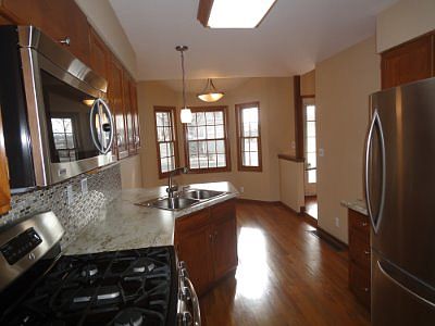 Look no further...this beautifully maintained home in Hyland Meadows is gorgeous and ready to move into. This amazing home is loaded with quality features and upgrades that are sure to please. The open eat-in kitchen has a compliment of upgraded stainless steel appliances, new counters, glass tile back-splash, and extended hardwood floors. The spacious two story family room is glorious and perfectly appointed with a classic brick faced fireplace. This room is light and bright with large windows that perfectly frame the private xeriscaped backyard. The main level also features an elegant dining room, fully remodeled guest bathroom and a dramatic overlook from the upper level. The second level features a master suite that has a newly remodeled 5 piece. There is a second bedroom and full guest bathroom. This home has a large unfinished basement for all of your storage needs. Newer furnace, A.C., roof, carpet, and more. Steps away from open space. HOA incl. ext. landscape and maintenance.
