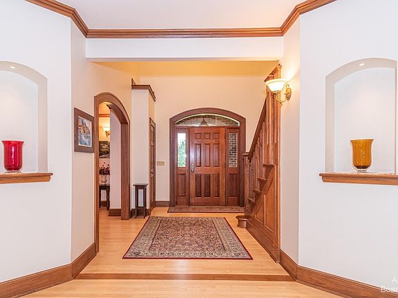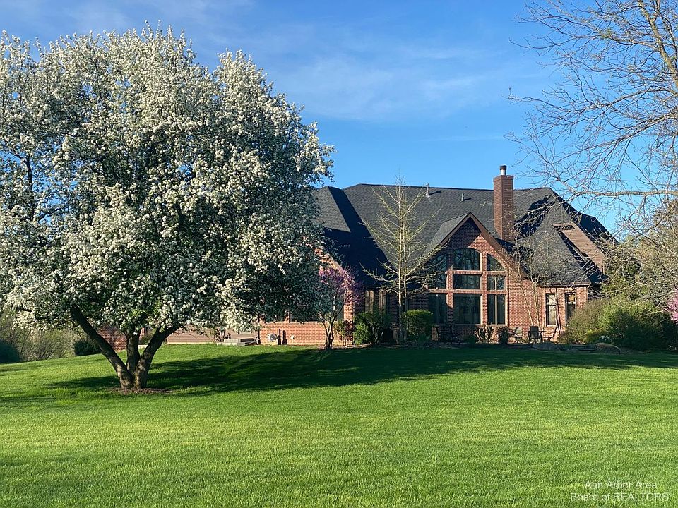 This custom-built Craftsman inspired home boasts over 7,800 square feet of finished perfection! Beautiful hardwood floors on the first level and rich woodwork throughout create a perfect sense of warmth and welcome. Its expansive footprint features a two-story foyer that opens to the Great room with vaulted ceiling, floor-to-ceiling windows and fireplace with granite surround. The nicely appointed kitchen has granite, stainless appliances, large center island and adjacent informal dining. French doors open to a four-season room with bluestone floor and a fireplace. The first-floor Primary bedroom has a spa-like bath with extensive tile work, dual vanities, soaking tub and shower with dual shower heads. Upstairs are four bedrooms, two full baths and a bonus room or play area for kids. The w walkout lower level with large windows has a recreation room with kitchenette, sitting/game area, full bath and workshop. Out back is a terrific bluestone patio overlooking a private 2.5-acre parklike setting of open space, fields and towering trees. Located in Northeast Ann Arbor, this home is just minutes to U of M North Campus, U of M Medical Center, Trinity Health, Domino's Farms, Matthaei Botanical Gardens and expressways., Primary Bath, Rec Room: Finished