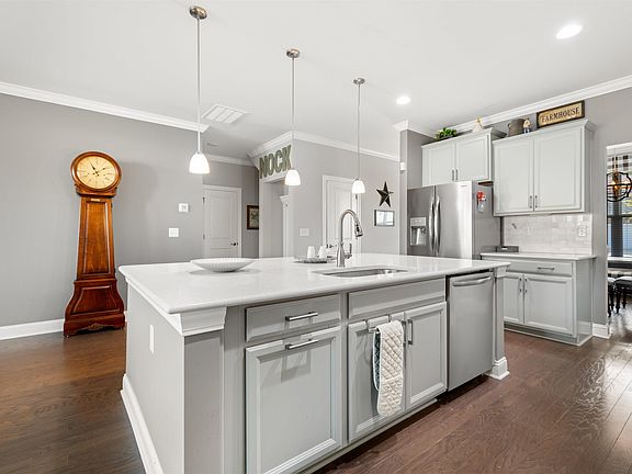 Welcome to this beautifully maintained and updated 5-bedroom, 3.5-bathroom home in the highly sought after Farm at Timberlake community. With an abundance of natural light, this home offers an open main living space, making it perfect for both entertaining and everyday family life. The large kitchen is a chef's dream, featuring modern updates like stainless steel appliances, under-cabinet lighting, a spacious center island with seating, and a chic tiled backsplash. A formal dining area adds an elegant touch for those special meals. The first-floor master suite is a serene retreat with stunning lake views and a generous walk-in closet. The ensuite bathroom features a luxurious tiled walk-in shower, dual sink vanity, and a linen closet for added storage. Upstairs, the expansive flex space offers endless possibilities for use as a second living room, home office, or playroom. Four additional bedrooms and two full bathrooms provide ample room for family members or guests. The home shines with exceptional outdoor living spaces, including a stunning screened-in porch, perfect for enjoying the fresh air while staying shaded and bug-free. The expansive stone patio, overlooking the lake fountain, is ideal for relaxing or hosting gatherings, while the custom stone fire pit creates a cozy evening retreat. The beautifully designed stone walkway adds an elegant touch to the exterior. For added convenience, the garage is equipped with a 220V outlet. The Farm at Timberlake is a natural gas community that offers fantastic amenities, including two outdoor pools, a clubhouse with a fitness center, an indoor pickleball court, a playground, and a fishing pier. Conveniently located just minutes from Hwy 31, you'll have easy access to an array of restaurants, shops, and more. Don't miss this opportunity to own a home in one of the area's most desirable neighborhoods!