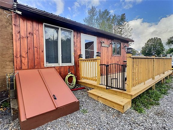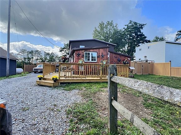 This remarkable home boasts a new kitchen featuring custom cabinets by Candlelight Co. Crafted from stunning hickory wood w/ a Cherry finish, soft-close drawers, Lazy Susan for extra storage, double pull-out garbage drawer, & generous pull-out cutting board. The kitchen also showcases a deep stainless farm sink & solid quartz countertops. Updates continue w/ fresh laminate flooring, stylish tile backsplash, new light fixtures, & convenient built-in wine rack. The property's outdoor space is equally impressive, w/ a fully enclosed yard w/ new vinyl fencing & elegant solar lighting. Enjoy gatherings on the new stamped concrete patio w/ a cozy firepit, by the above ground pool w/ a new pump & filter, or entertain in the spacious 550 sq ft game room, complete w/ a pool table & dartboard. This home covers all major upgrades, like a new metal roof, new carpeting in the living room, stairs, & primary suite, new electric service w/ breaker box & generator hook-up. The front deck, Bilco doors, lead glass front door w/ a screen door, and a freshly laid gravel driveway –all completed this year. Your dream home awaits! Showings begin on 09/16, at 10AM & offers will be reviewed after 09/25 4PM.