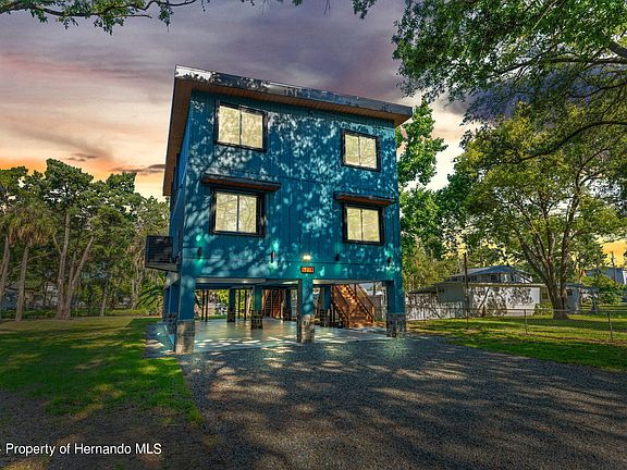 Welcome to this unrivaled, NEW CONSTRUCTION LUXURY WATERFRONT HOME on the world-renowned Weeki Wachee River! Expertly crafted by Vista homes with modern amenities and curb appeal that complements the beauty and tranquility of its surroundings. The exterior features board and batten styling, contemporary colors and clean lines. Elevated on sturdy columns, there is parking for up to 4 vehicles on the ground level or an idyllic shaded gathering space. Upon entering, you are greeted by the expansive open floorplan and soaring 20 ft ceilings. The kitchen boasts a generous island, stunning tile backsplash, quartz countertops, stainless steel Samsung appliances, solid wood cabinets with soft-close, roll-out trash cans and a multitude of storage solutions. Natural light envelopes the living room during the day, while an electric fireplace lights up your serene evenings. Luxury vinyl flooring throughout for easy maintenance. Custom steel and cable railings along the stairs take you to the 2nd floor loft, where you will find loft area with a custom wet bar with sink and beverage cooler. The residence boasts a Primary Bedroom has a walk-in closet with custom shelving, 3 additional bedrooms with built-in closets and 3 beautifully appointed custom-designed bathrooms, each adorned with glass shower enclosures. The generous 15 by 30 foot rear deck is a canvas for your outdoor living aspirations; grilling under the stars, lounging in style, or savoring alfresco meals with loved ones. This home transcends the ordinary and invites you to experience modern living in its purest form, where innovation, luxury and nature converge in perfect harmony. Design upgrades including hurricane shutters on all of the windows and doors, a metal roof, and elevating the home out of the flood plane resulted in insurance estimates for flood and home owners insurance COMBINED at under $3,000 for the year. In addition, the builder will also be providing a 1 year BUILDER WARRANTY and a 7 year structural warranty.