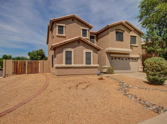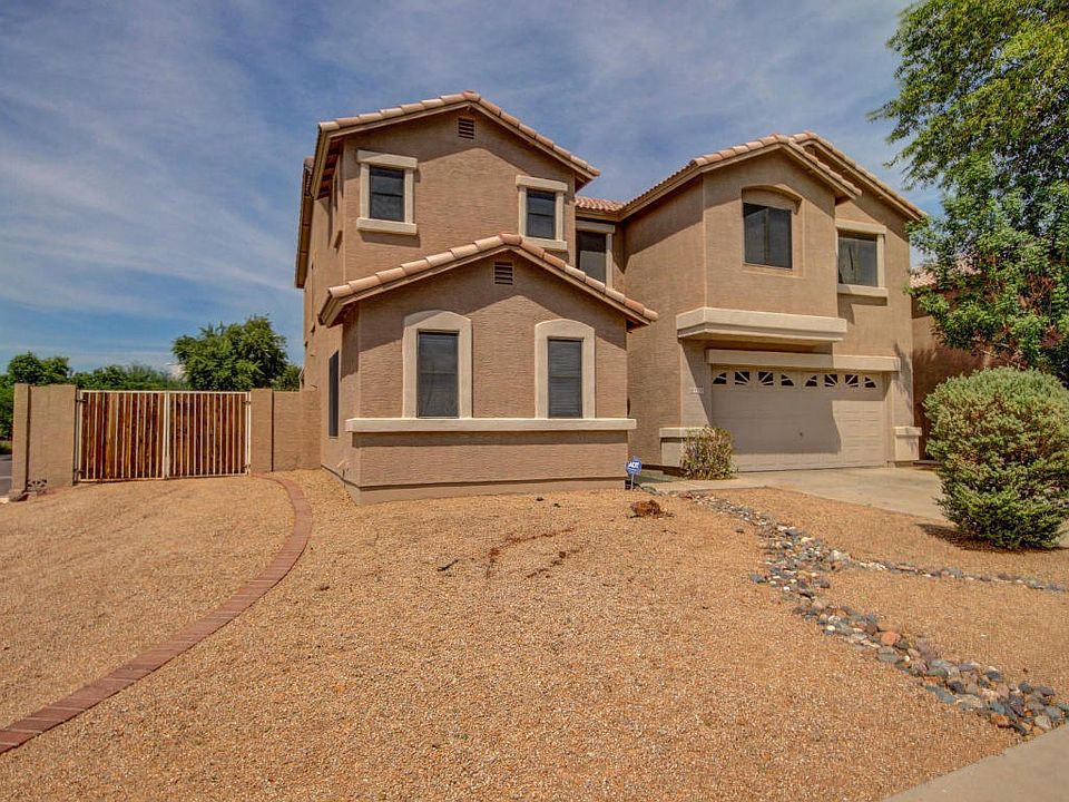 Home sweet home! Move in ready home set on a quiet corner lot with N/S Exposure, easy care landscape, & great curb appeal! Fall in love with the soaring ceilings, custom designer paint, laminate flooring and plush carpeting in all the right places! Large eat in kitchen with open concept design that offers tons of cabinetry, center island, & plenty of counter space. Personal workroom station with computer hook up off kitchen! 4 spacious bedrooms and additional loft upstairs. Each bedroom has plush carpeting. Master bedroom includes a walk in closet and spa like bath with garden tub and separate shower. Relax in the private backyard oasis complete with a covered patio, refreshing pool, built in BBQ and desert landscape! Put this home on your must see list and see it today before it's gone!