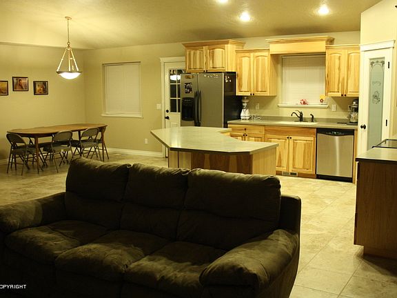 New top quality 6 bedroom home on quiet wooded acreage with great well water. Custom cabinets, solid surface counter tops throughout, large pantry, tile, vaulted ceilings, open floor plan, bonus room, jetted tub, wood stove, oversize garage, all rooms wired for cable and DSL, and more. Motivated to sell and will negotiate closing costs. Seller has a real estate license in the state of Alaska.