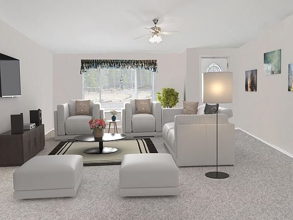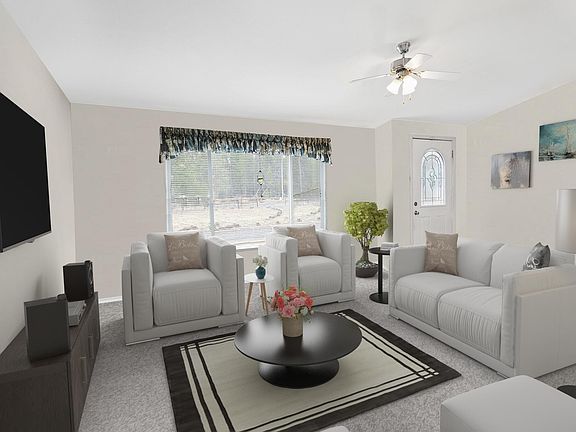 Escape to nature in this stunning 3BD/2BA open concept home on a 1-acre lot, bordering BLM land and trails. This property features a 2-car garage and shed. Enjoy the serene forest views and wildlife sightings right from your doorstep. Endless outdoor activities nearby, including skiing, hiking, and fishing at the lakes and rivers. The house is located just a short distance from town for easy access to amenities.Enjoy the comfort of air conditioning in the summer months.. The perfect retreat for nature lovers seeking peace and tranquility. Don't miss out on this incredible opportunity to own your piece of paradise! (1516 sqft).City water/sewer being installed currently.Lots may be dividable after city water sewer hook ups for investment opportunity. 2 full RV hook ups. listing photos digitally staged to show what different furniture options would look like.
