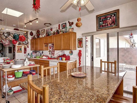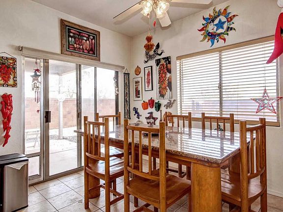 Charming Southwestern Style Home with great curb appeal and spacious backyard. Beautiful tile floor, open floor plan, ceiling fans, and patio access from dining area. Plenty of wood kitchen cabinets, center island, and white appliances. Lots of natural light throughout and easy entertaining in great room. Interior laundry room. Covered patio. will NOT last.
