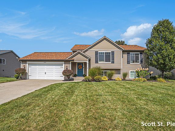 This well-maintained home offers a bright, open layout with cathedral ceilings over the main living areas. The kitchen features shaker-style white cabinets, stainless steel appliances, modern pendant lighting, and a center island. The main floor includes two bedrooms and a full bath, with a walk-in closet in the primary bedroom. The walkout lower level adds two additional bedrooms, another full bath, and a spacious living area with a beverage refrigerator and bar setup—perfect for entertaining. Enjoy central air, an attached two-stall garage that's insulated and finished, plus a 10' x 10' storage shed. A Shield Essential Home Warranty by American Home Shield is included, with coverage details located on top of the refrigerator. Please remove shoes or use the white shoe covers provided at the front door when touring the home.