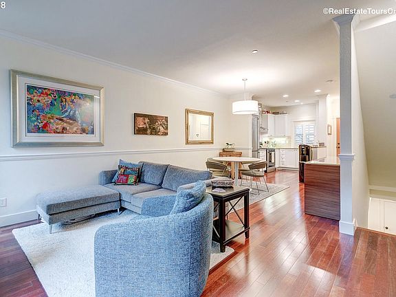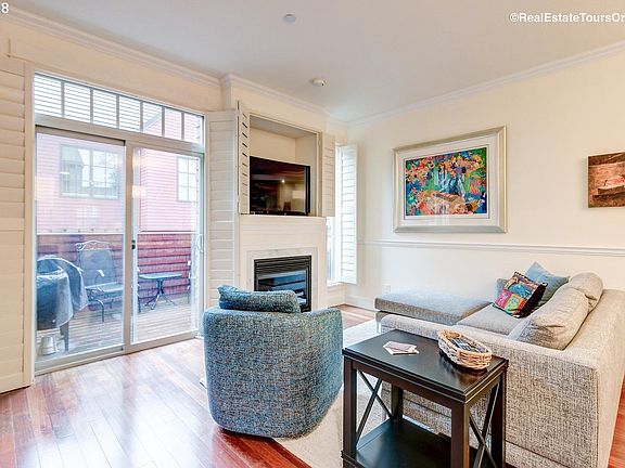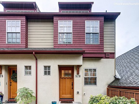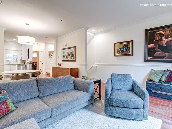 First Addition Town Home with custom details including, wood shutters, hardwoods, upgraded kitchen & baths, fireplace and washer and dryer area features built-in folding table and drying racks. Two owner suites, One of them features a loft area. This is one of the rare end units in the complex with an attached extra large garage with storage and finished lower level office. Easy walking distance to everything in downtown Lake Oswego.