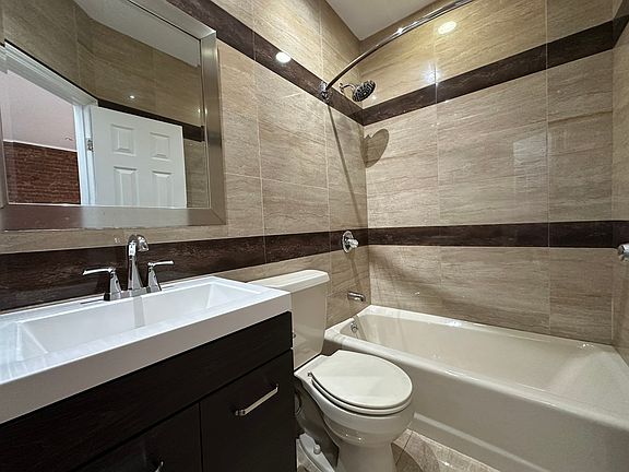 AVAILABLE NOW! This is a tremendous opportunity. Spacious, top-floor, quiet, gut renovated, 2 bedroom floor-through in Bay Ridge. This 1100sf unit is set up railroad-style, so you pass through one bedroom to get to the next. You'll enjoy the apartment's sound proof windows, hardwood floors throughout and southern exposure. With exposed brick walls and high ceilings, the apartment really feels like home. The kitchen was fully over-hauled and features a window, hardwood floors, caeser-stone counter-tops and an open layout. You'll find a full-sized fridge, stainless steel appliances, a gas range/oven and very tasteful recessed lighting. The bedroom will have no problem fitting a king. Inside the brand new bathroom you'll find great storage and a luxury shower. All that 5th Ave has to offer is right at the corner, including laundromat, coffee shop, grocery, and other amenities. Call/text/email to schedule a viewing or to request a video.