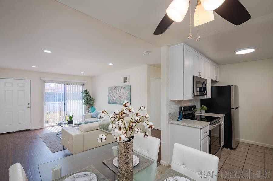 To view, call (858)663-3256. This entry level 1 bedroom, 1 bathroom home has been freshly upgraded! Property features include a newly remodeled, storage-rich kitchen outfitted with new stainless steel kitchen appliances, new shaker cabinetry, subway tile backsplash and quartz countertops. Additional features include a new bathroom vanity, a living room patio, walk-in coat closet, a freshly painted interior and hard flooring throughout.