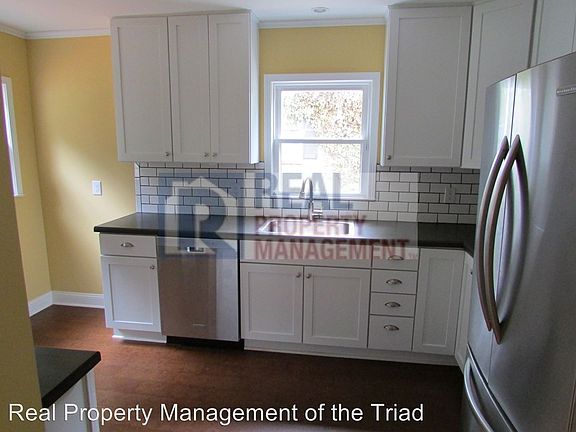 Charming Starmount Home in Grimsley School District - Classic 1950's Starmount Ranch in the Grimsley School District with 3 bedrooms and 2 baths. Gorgeous wood floors throughout most of the home. Updated kitchen with stainless steel gas range, refrigerator and dishwasher. Spacious living area with wood burning fireplace and adjoining dining room and study. Updated master bath. New energy efficient gas hot water heater and furnace assuring lower heating costs. Replacement windows throughout. A large fenced in backyard for the children and pets to play while you enjoy the convenience of a bricked patio. This is a great find in a wonderful neighborhood. Security deposit and lease administration fees apply. For Showing Please Call 336-355-6688 (RLNE4135824)