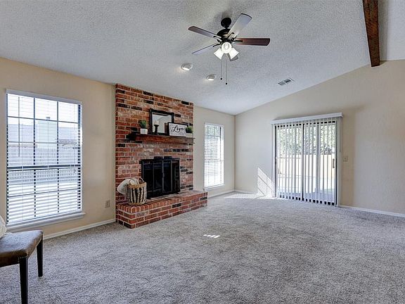 This charming home located in Edmond's Chisolm Lake addition will captivate any buyer. The home has been well maintained and you will feel comfortable from the moment you enter. With 3 bedrooms, 2 full baths, and a double car garage, it is the perfect option for a serious buyer. The living room boasts a cathedral ceiling providing for an airy feeling, while seamlessly flowing into the kitchen. Anchoring the living area is a brick fireplace which currently is functioning as wood burning but has the functionality to add gas logs. The home sits at the end of the cul-de-sac which allows for a spacious backyard. A covered patio is nicely positioned to relax and enjoy cookouts or coffee. The primary suite has a walk-in closet and full bathroom. A separate laundry room is centrally located with access to the primary suite, and guest rooms. Chisolm Lake is conveniently located to area shopping, restaurants and entertainment, making this a a highly sought after location. This charmer is move-in-ready and just waiting on a buyer to make it their home sweet home! Buyer to verify all information.