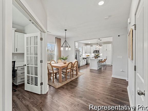 Move-In Ready Opportunity - 3BR / 2.5 BA Hudson plan features private study, separate dining room, well-appointed kitchen, open great room, and rear screened-in rear porch with patio, perfect for entertaining. Upgrades to kitchen include upgraded quartz counters, painted kitchen island, tile backsplash, SS appliances and upgraded gas range. Primary suite with sitting room and ensuite, spacious secondary bedrooms, additional full bath, laundry room, and game room space round out second level of this beautiful home.