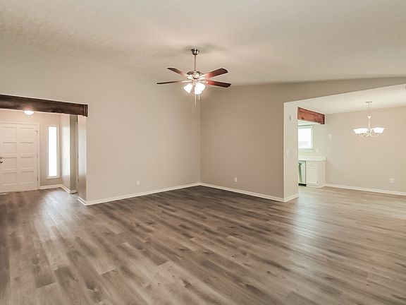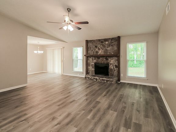 Please note, our homes are available on a first-come, first-serve basis and are not reserved until the holding fee agreement is signed and the holding fee is paid by the primary applicant. This home is priced to rent and won't be around for long. Apply now, while we make this home ready for you, or call to arrange a meeting with your local Progress Residential leasing specialist today. This ranch-style rental home in Riverdale greets you with a charming front porch and an attached two-car garage. Inside the renovated house, you'll discover an expansive living room with a beautiful stone fireplace whose decorative surround soars to the ceiling. Windows bring in light on either side. This space's rich vinyl plank flooring extends into the dining room, where you'll find a chandelier and sliding glass doors to the cement patio in the backyard. A delightful and functional kitchen contains all-white cabinetry, a pantry, and modern stainless-steel appliances. The vast master bedroom provides you with a substantial walk-in closet, a ceiling fan, and an attached bathroom with a wide vanity and nicely tiled tub/shower unit. Schedule a tour today.