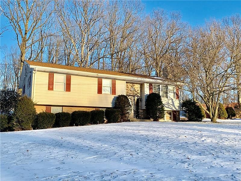Lovingly maintained brick split entry on 1+ acre lot. Upon entry you will be greeted with new carpeting, fresh paint and unlimited potential. The light filled living room flows through to the spacious dining room and kitchen which boasts solid wood cabinetry and lots of counter space, ideal for easy meal prep. Through the hallway is a full bath with hardwood flooring and linen closet. The large master bedroom hosts a walk in closet and private 1/2 bath. 2 additional light filled bedrooms finish out the first floor. Downstairs you will find the game room, a charming fireplace w/wood burning insert, the 4th bedroom and laundry. 4th bedroom would make a great office, home gym or play room. New roof in 2013 and newer hot water heater. Outside is a convenient storage shed, a lean-to for wood storage, a concrete patio and another deck that can accommodate an above ground pool. Current gas lease and royalties transfer. Easy access to RT 422, elementary school and Butler Hospital.
