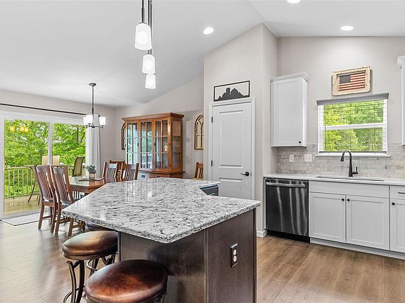 Nestled in a quiet cul de sac, this beautiful ranch in Brookside Forest has everything you've been looking for. Soaring vaulted ceilings invite you into the living room which flows seamlessly into the kitchen & dining area. The sleek & clean kitchen boasts shaker style cabinets, soft close drawers, tile backsplash & slate gray appliances. Cozy up to the center island breakfast bar w/ gorgeous granite countertops. A glass slider door lead an impressive view w/ a 14'x26' composite deck backing to trees for the utmost PRIVACY. Easy care LVP flooring throughout much of the main level. The massive primary bedroom suite offers large W/I closet & luxurious bathroom w/ dual sinks, separate tub & shower. 2 additional bedrooms & full bathroom round out the main level. Convenient main floor laundry room. The finished walkout lower level is an entertainer's paradise w/ large rec room, kitchenette, & bathroom. Close to highways, shopping, restaurants & more! Great neighborhood, Wentzville Schools.