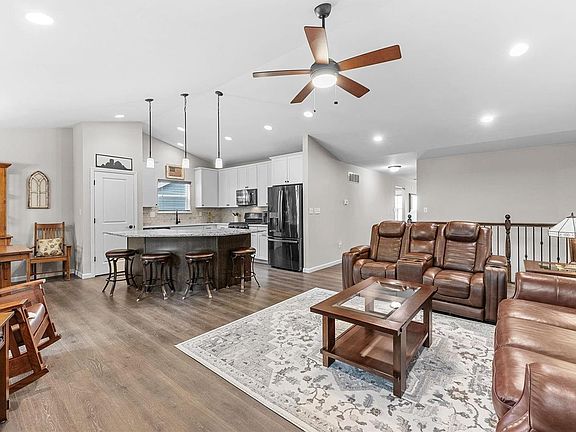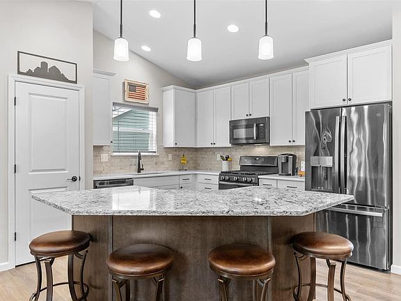 - Dining/Living Room Combo, Kitchen/Dining Room Combo, Double Vanity, Tub, Breakfast Bar, Breakfast Room, Kitchen Island, Custom Cabinetry, Eat-in Kitchen, Granite Counters, Pantry, Solid Surface Countertop(s), Open Floorplan, Vaulted Ceiling(s), Walk-In Closet(s), Bar