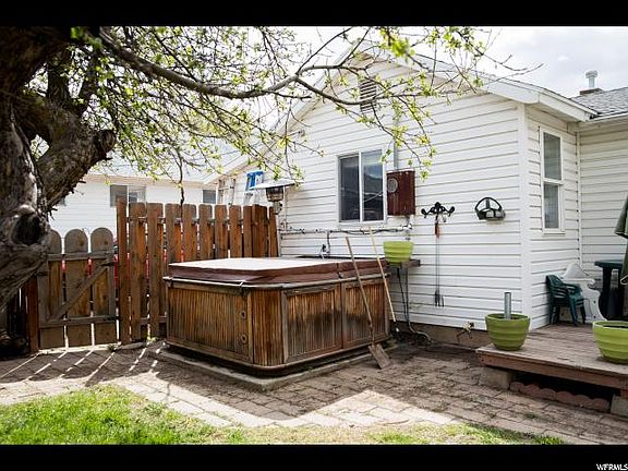 OPEN HOUSE SAT. APRIL 21st 11-2!! Great house on quiet street! Minutes from downtown shopping and restaurants. Less than 10 minutes from Ogden Canyon. Huge great room, cute kitchen and fantastic yard! Ceiling fans through out. Hardwood floors in bedrooms. Bay window with window seat/storage in front bedroom. Laundry area conveniently placed off of Master. Detached garage with a great workshop space/room attached. Long driveway gives you lots of parking space. Mature fruit trees (2 apple, 1 pear). Fully fenced backyard with back deck. PLENTY of room for dogs and kids to play! Backyard is shaded from that afternoon sun. Grow your own vegetables in the garden space next to the cute playhouse! Hot tub stays but needs new thermostat and possibly other parts to get it running again. All stainless steel appliances in kitchen. Roof is only 2 years old. Night Owl Security camera system (3) included (I year old).