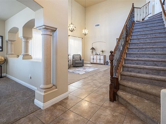 Nestled near the end of a cul-de-sac, just 2 miles from The District at Green Valley Ranch, this beautifully designed home offers luxury, flexibility, and no HOA restrictions. Step inside to soaring vaulted ceilings, an elegant living & dining area, and a spacious office/den. The open-concept kitchen features granite countertops, stainless steel appliances, a built-in double oven, and a gas range top, flowing into the inviting family room with a cozy fireplace. Two primary suites—one upstairs and one downstairs—make this home perfect possibility for multi-generational living. The upper level also features a large loft with a study/office retreat. Step outside to your backyard oasis, boasting a pool, spa, water features, slide, and a spacious patio dining area—ideal for entertaining! With its prime location, flexible layout, and resort-style amenities, this home is a rare find. Schedule your showing today!