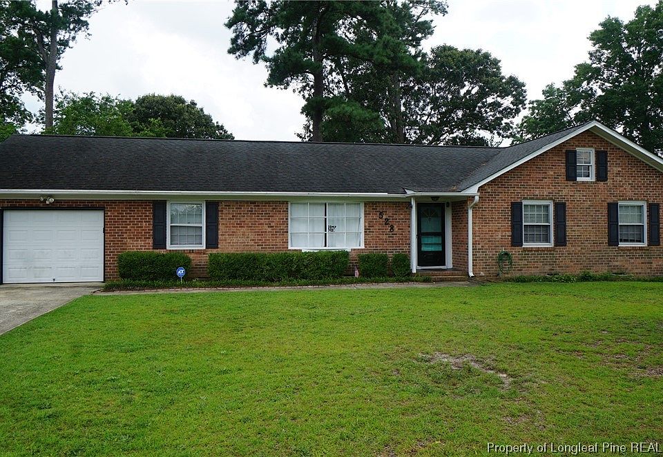 Amazing brick ranch home featuring 4 bedrooms, 2 baths, formal living room, formal dining room, family room and single car garage. The kitchen boasts granite counters, stainless steel appliances, and tons of cabinet space. Bathroom tiled with, rain shower head and frameless glass shower doors. Other amenities include water resistant laminate flooring throughout the home, gutters, patio, fully fenced backyard, ceiling fans, beautiful fixtures, plantation blinds, large pantry, crown molding and more. Just minutes from Fort Liberty with easy access to the Riley Rd gate, shopping, and restaurants.