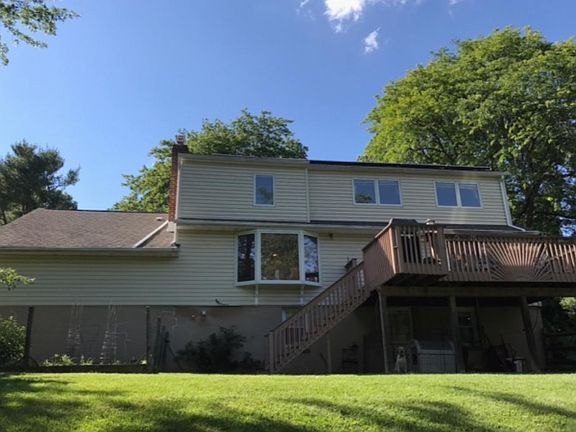 Welcome to this spacious two story colonial home located in top rated T-E Schools. Foyer entrance, hardwood floors flow from the foyer through the Living Room, Dining Room, Family Room. Family Room features a gas fireplace, built-ins with wet bar & bay window overlooking the fenced back yard. The updated kitchen has tile and wood floors, granite, large island with 6 burner Jenn-Air cooktop, stainless appliances, wine cooler, large breakfast area with entrance to large deck with natural gas grill. There is a full updated bath on this level as well as a laundry. The second floor offers a huge master bedroom with a sitting area, walk-in closets, laundry and a full bath with frameless glass corner shower, 2nd bedroom has an en suite bath & walk-in closet, 3rd and 4th bedrooms with a hall bath complete this floor. Plus hardwood flooring under all carpeting on second floor. The basement has one side that is a walk-out finished area and on the other side a storage/ work room. 2 zone AC, 3 zone hot water gas heat, oversized two car garage.
