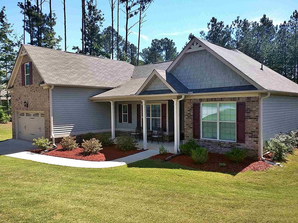 COUNTRY FRONT PORCH-FOUR BEDROOMS WITH THREE FULL BATHS-LOTS OF TRIM WORK, GRANITE KITCHEN,HARDWOOD FLOORS , SPLIT BEDROOM PLAN, DINING ROOM. Teen Suite with bath upstairs. Quiet private backyard . Highly sought-after community. 5 minutes from I-75