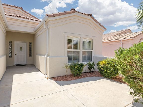 Gated Community, Stunning Views and An Open Floor Plan!! Welcome to your serene desert oasis in Mesquite, NV! Situated on a picturesque lot in a 55+ community, this beautifully maintained home offers panoramic views of the surrounding mountains and a meticulously landscaped yard with palm trees and vibrant natural flora.Inside, discover a spacious, open floor plan, featuring a modern kitchen with updated appliances, ample cabinetry, and breakfast bar, perfect for casual dining. The living area is accented by high ceilings and abundant natural light through large windows, providing a fresh and airy feel.This home boasts 2 cozy bedrooms and a den/office. The primary suite includes a private bathroom with dual vanities and a large spacious closet. A second bathroom and dedicated laundry room add to the home's convenience and functionality.Step outside to the covered patio to simply relax and enjoy Mesquite's stunning sunsets. With privacy, peace, and proximity to local amenities, this home is a remarkable find. Make it yours and embrace the blend of comfort and desert beauty!