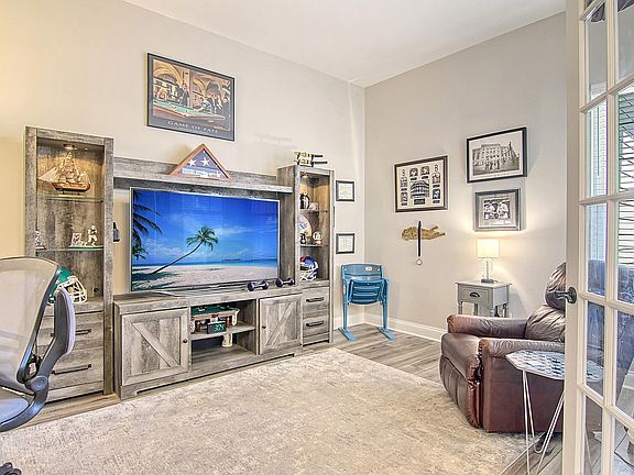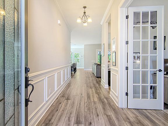 Gorgeous Lake Front Resort Living in a 55+ Gated Active Adult Community. This stunning home sits on a beautiful wooded lot and has it all. Featuring 3 bedrooms plus an office with double glass doors, 2.5 baths, Great Room with fireplace, A chefs dream Ultra Gourmet Kitchen with a Large Island, Separate eating area. Upgrades include a driveway paver extension, gorgeous landscaping, beautiful Front Door Glass Insert, Epoxy Garage Floor with separate golf cart parking, 3rd bedroom, HovHub, Custom Pantry and Master Closet with Ironing Bd, Air Cond Attic Storage, Ultra Spa Bath in the Master, Enclosed 3 Season Room off the back, Paver Patio with a Custom Awning. Also upgraded with hardi-plank siding. Why wait for new construction when you can have it all now! Schedule your appointment today! All appliances and window blinds are included. Golf Cart tours are available upon request. Unbelievable amenity center with indoor/outdoor and family pool, hot tub, gym, pickle ball, tennis, 300+ acre lake surrounding the community for kayaking, fishing & more.