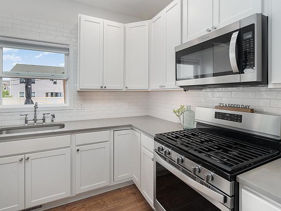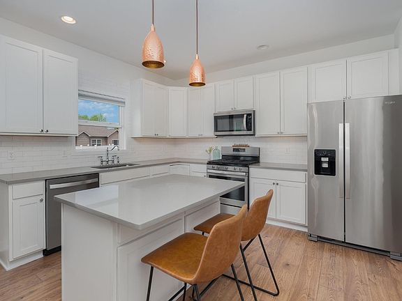 Each room of this home has been completely customized, starting in the kitchen with quartz counter tops, extra tall cabinets, undermount sink and upgraded appliances. Wood floors span throughout the main floor. Custom built-in cabinets and shiplap anchor the open concept living room. Custom wall treatments with modern colors adorn each room of the home for the perfect move in ready touch. All four bedrooms and two full bathrooms are upstairs as well as the laundry room and loft area with built-in fireplace. The unfinished basement is ready to be customized. The home is equipped with a Ring Doorbell, SimpliSafe alarm system, sump pump back up, and Radon System. The exterior is completely landscaped in front to the fenced in back yard with extra large patio, storage shed and swing set. Walking distance to neighborhood park and fishing pond.