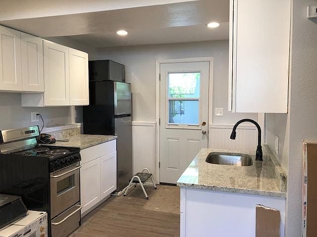 Beautiful 2 bedroom, 1 bathroom apartment for rent. Available immediately! 900sqft. All utilities included, plus high-speed internet! Rear entry access, lower-level apartment. All BRAND NEW kitchen and appliances with granite countertops and beautiful modern flooring, plush carpet. Updated bathroom including granite countertops and newly tiled shower. High-end laundry units included! High-quality sound-proofing insulation. Big windows mean lots of natural light! Storage area. *Shower only, no bathtub* Beautifully landscaped yard with lots of trees and flowers! It is beautiful all year round! Cool, shaded patio with firepit. Pool up in the summertime! Shared garden space and BBQ grill included. No yard maintenance as a part of the lease. Right next to a park. Walking distance to The Meadows Shopping Center and bus stop. Quiet, friendly neighborhood. 1 mile to 1-15. PERFECT for someone looking for the benefits of a yard space without the maintenance! One off-street parking, lots of street parking. All outdoor amenities are shared with property owners. Ducks and chickens live here, so there are opportunities to share in farm fresh eggs! No other costs to live here but the rent! Literally everything is included. Text or call for rental requirements, virtual tour, and additional information. Inquire for shorter lease term options. Utilities included. Renters insurance required. Tons of extras. Access to beautiful yard included! No pets, no smoking. Off-street parking.
