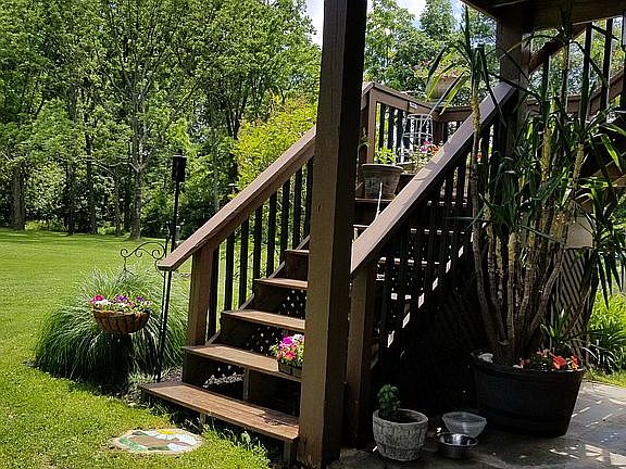 This beautiful home sits on a spacious 2+ acre lot at the end of a cul de sac and bordering open space. If you are looking for room to roam and privacy you have found it. The main level of this home features a spacious living room and a dining area with a built in speaker system and views of the newer raised deck and open back yard through the sliding doors. The kitchen features new granite counter tops and tile flooring. There are three bedrooms as well as a full bath also conveniently located on this level. The lower level boasts a massive amount of living space currently a family room and office space as well as a full bath. Through the sliders you will find a little private retreat complete with your secluded hot tub. During the winter enjoy the hot tub and then come in and warm up in front of the gas fireplace. During the summer enjoy a dip in the pool and when it gets too hot come in for some refreshing central air. If you are a nature lover this property has plenty to offer. Wildlife is attracted to the pond and mature landscaping abounds. Just a few of the updates include: New roof 2012; New heat pump 2016; New deck 2017; New skylight 2017?; Slate patio pointed 2019; New well pump 2018; New kitchen granite counter tops and flooring 2016; 2 storage sheds. This meticulously cared for home really has so much to offer that you have to see it to appreciate it. This is one of those homes that will sell very quickly in today's market and is priced accordingly.