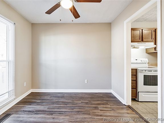 Charming 3-bedroom, 2-bathroom home located with a 10 minute drive Fort Liberty and the within 5 minutes of the mall. FULLY RE-PLUMBED HOUSE!! The property features LVP flooring in the living room and dining room and carpet in the bedrooms. Wood-burning Fireplace creates a cozy focal point in the living room. Kitchen has a eat-in area with bay window. Formal Dining room or could be used as an office in the front of the house. Primary bedroom has a walk-in closet and en-suite bathroom. 2 other bedrooms at front of the house share use of the hallway bathroom. There is also a spacious covered front porch and a deck at the rear(both recently painted). Fully fenced backyard. Single car garage.