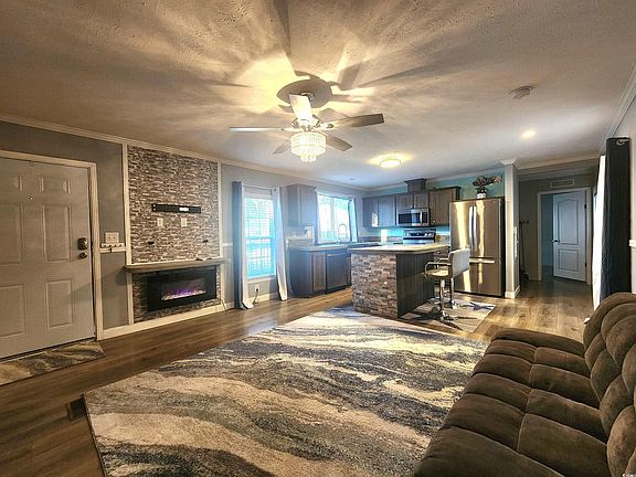 - Fireplace, Split Bedrooms, Window Treatments, Breakfast Bar, Breakfast Area, Kitchen Island, Stainless Steel Appliances, Solid Surface Counters