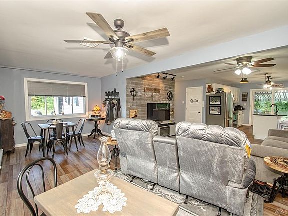 3 bedroom 2 bath 1130sf home on two park like lots totaling 1.28 acres. Nice open floor plan gives you lots of options and tons of large windows and glass doors that allow you to enjoy the view and give tons of light. Kitchen has an island and counter bar with a walk out to the back patio with a retractable awning. Nice large laundry with full bath and access to the remodeled garage. 3rd bedroom has private entrance. New attractive and durable flooring in the main living area.The lights and ceiling fans were recently updated and a new roof was put on 2018. New water line from the road to the house installed 9/28/2020. You'll love spending time on the front deck or back patio enjoying the wooded lot with a creek that runs through it plus all the amenities of Lakengren such as a swimming pool, boating and fishing!
