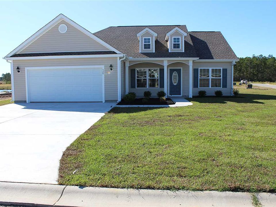 Popular 3 bedroom Pecan floor plan, relaxing front porch, rear screen porch and patio. Open floor plan, enlarged by 2' in width the living/dining area has vaulted ceiling, ceiling fan, large kitchen has lots of solid wood cabinets with crown molding, breakfast counter, stainless steel appliances - microwave, smooth top stove, dishwasher, and pantry closet. Wood look vinyl flooring through-out the living area and kitchen. Master suite has tray ceiling with ceiling fan, 2 walk-in closets, 2 separate sinks in raised height vanities, linen closet and a 5 ft. walk-in shower, window to let the light in. Split bedrooms with guest bedrooms and bath on opposite side of the house. Spacious finished/painted 2-car garage, with automatic door opener, pull down stairs to attic storage above. Irrigation system, gutters, sodded and landscaped yard. Future community pool. Award winning local builder. Aynor Schools. Less than 1 mile to Hwy 22, within 30 minutes of Myrtle Beach. Video is for illustrative purposes only and may be of a similar home built elsewhere. Square footage is approximate and not guaranteed. Buyer is responsible for verification.