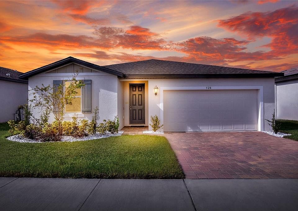 This beautiful home is located in the heart of Winter Haven and was built in 2021. It is located on a cul de sac and is in pristine shape. This home offers four bedrooms and three bathrooms. The kitchen has upgrades such as an additional custom storage cabinet, water filtration system, stainless steel appliances, and a breakfast bar. The home offers an open concept and the kitchen is located near the living room that is perfect for hosting. The modern styled living room includes a built-in television and an electric fireplace that is ideal for entertaining. The master bedroom is a private suite that offers a spacious walk-in closet and double vanities. The other three bedrooms offer plush carpet and practical closets. Within the community there are resort style pools and playgrounds. Legoland, shopping centers, restaurants, and other community resources are within close proximity of 27 and the Polk parkway.