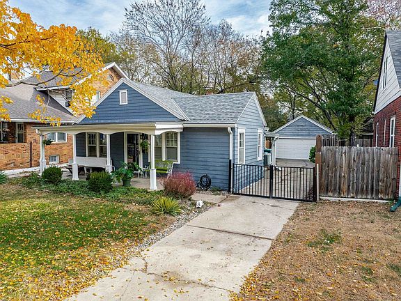 What a find! The charm of the College Hill area is on full display in this well-maintained, character-rich home full of tasteful updates for the modern buyer. Sip your morning coffee from your spacious front porch OR beautiful back patio which overlooks your relaxing, fenced-in backyard. Need another porch? Try your side porch with beautiful mural - truly an entertainer's dream! Once inside the home, find an open floor plan with beautiful hardwood floors, a spacious living room and dining room for gathering, updated kitchen and bathroom, and a welcoming color scheme throughout. ALL APPLIANCES REMAIN. During seller's ownership - brand new cement back patio, garage pad, and side porch. New windows and beautiful sliding patio door in primary bedroom and new windows in kitchen! Beautiful mature trees abound along one of Wichita's most famous streets. Don't miss this Crestway Cutie - schedule your showing today!
