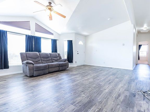 Beautiful 3 bed, 2 bath acreage home! Open floor plan w/ great natural light throughout! Spacious chef's kitchen provides plenty of counter space, island & breakfast nook. Primary w/ carpeting, 2 walk-in closets & ensuite w/ 2 sinks, corner tub & separate shower. 2 nicely sized guest bedrooms w/ carpeting, lighted ceiling fans and ample closet space. Great indoor laundry space. Plenty of outdoor space to make your own! Back deck & storage shed to appreciate as well. Additional features include: MasterCool on roof, dual pane windows, 2x6 exterior construction.
