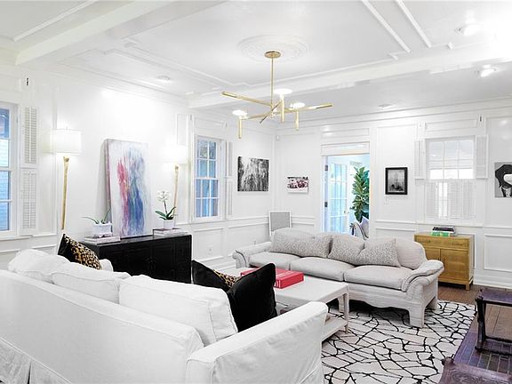 Beautiful Cape Cod home with outdoor oasis featuring pool and greenhouse in Historic Crown Heights! Step inside to the formal living space, detailed with woodwork, beautiful hardwoods and anchored by the oversized fireplace. The expansive sun room features oversized windows, sky lights, fireplace and sliding doors that join the indoors with the lush backyard. Renovated kitchen offers marble countertops, herringbone patterned floors, built-in pantry, stainless appliances with gas range and custom vent hood. Bonus space off kitchen features office area, utility room with sink, bar with beverage fridge and endless storage possibilities. Half bathroom recently updated with new vanity and wallpaper. Designer lighting fixtures throughout. Upstairs you’ll find the expansive primary suite, with ensuite bath featuring walk-in shower. Secondary bedrooms share the hall bath. Outside, find the saltwater pool, hot tub, greenhouse, bath with outdoor shower, deck and multiple seating areas.