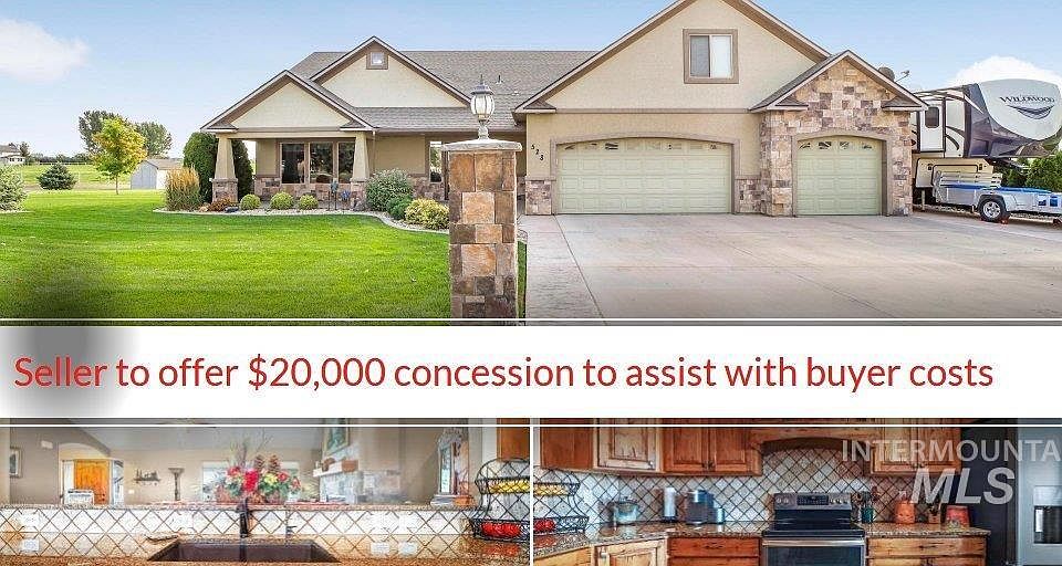 ESPECIALLY INVITING HOME IN A PRIVATE COUNTRY SETTING WITH GORGEOUS COUNTRY VIEWS located just minutes from Twin Falls and near the Jerome golf course. You will enjoy an ideal lifestyle in this beautifully kept home featuring large spacious rooms, open floor plan, extra-large chef's kitchen, granite counters, double ovens, reverse osmosis, tile flooring, wood flooring, gas fireplace, luxury master suite with walk-in-shower and jetted tub, large covered patio for entertaining, gorgeous landscape, large garden area, RV parking with power, and 4 car tandem garage with drive-thru to backyard, and great neighbors. Seller to offer a $20,000 concession to help buy down buyers costs