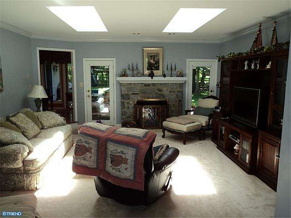 This custom-built, well maintained and spacious ranch home in award winning Souderton School District is perfect for those looking to down size to one floor living. Situated on nearly a full acre of partially wooded, beautifully landscaped land, this home has much to offer. As you enter the foyer you immediately notice the sunken living room/great room with wood burning fireplace and skylights to allow for plenty of natural lighting, with exit to the rear patio. To the left is the formal dining room with bay window. Adjacent to the dining room is an open and well designed kitchen with newer double oven, built-in pantry, desk area, and separate breakfast area overlooking the rear patio. The master bedroom is located on this side of the house, allowing for plenty of privacy and features its own exit to the patio area. Just outside the master bathroom is a make-up area and walk-in closet. Off the foyer on the right is the perfectly sized family room (or second living room) which also features a bay window. Down the hall is a powder room, two spacious bedrooms, and full bath with double sinks. The layout of this home allows for several living options, including in-laws, long term guests, etc, providing them with space of their own. The cul-de-sac location gives plenty of privacy yet is close enough to major routes. You'll want to unwind at the end of the day on the rear patio overlooking the back yard with numerous perennial plantings, shrubs, and flowers. This well designed home is a must see so schedule your appointment today.
